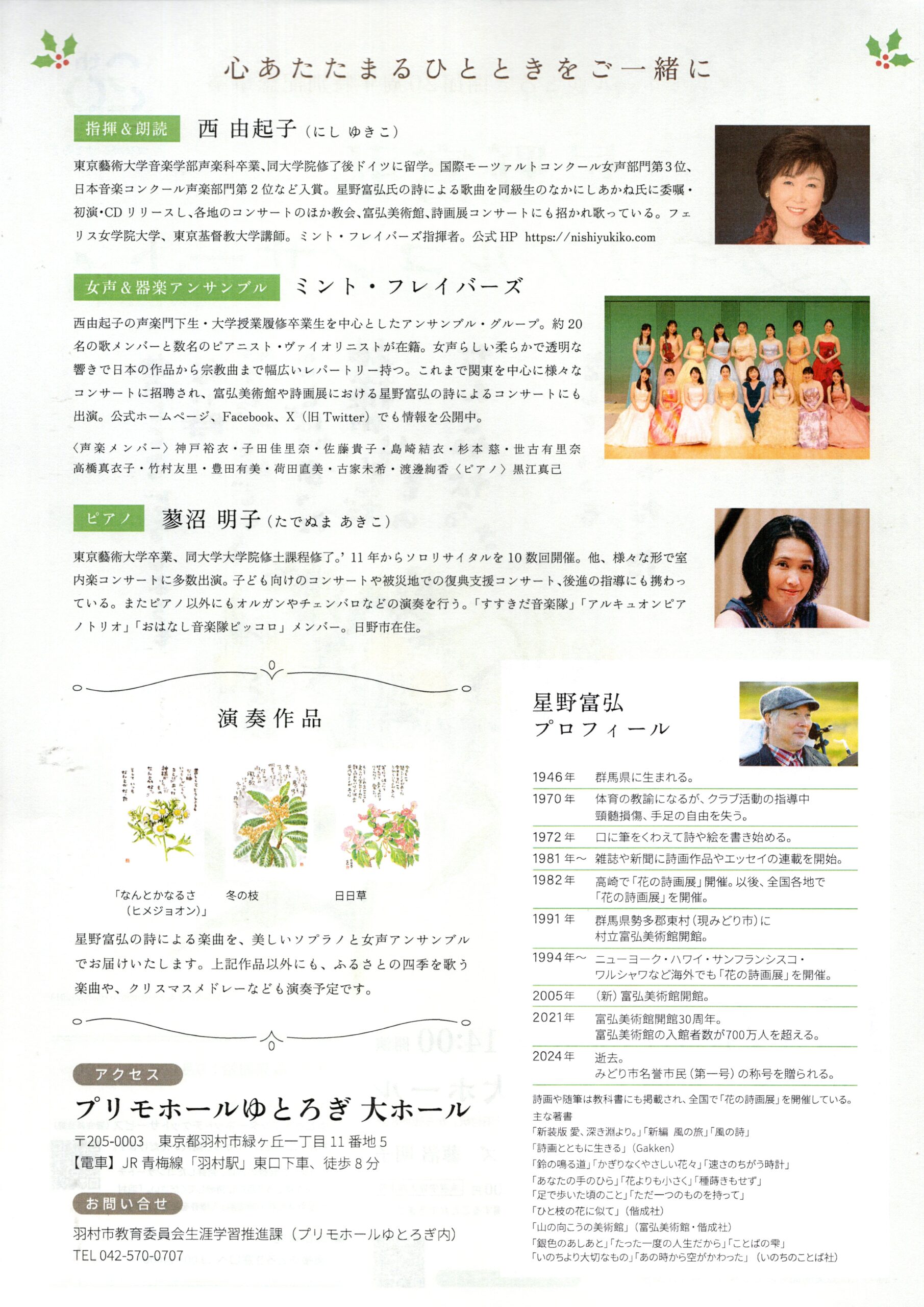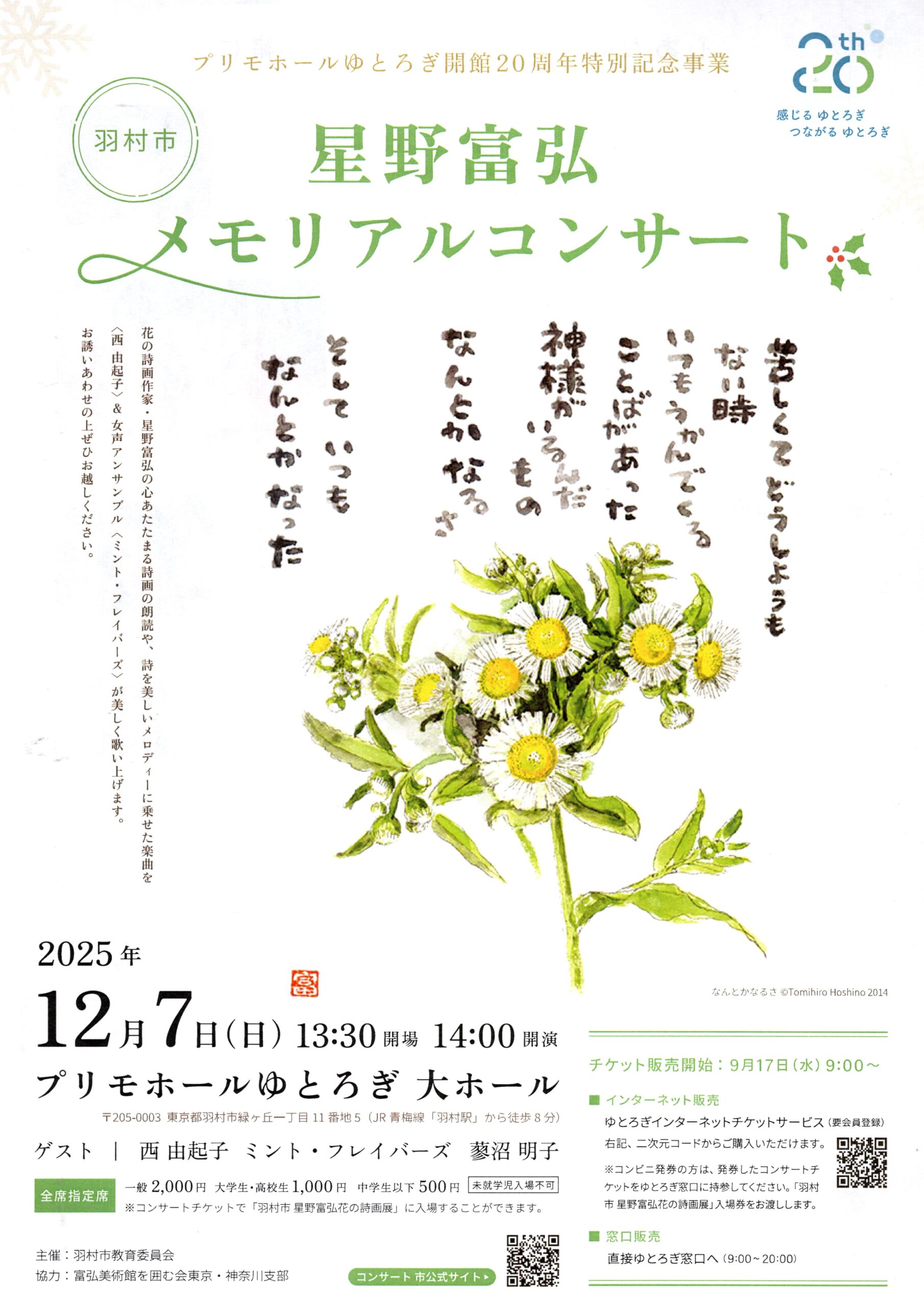 プリモホールゆとろぎ開館20周年特別記念事業 羽村市 星野富弘メモリアルコンサート |